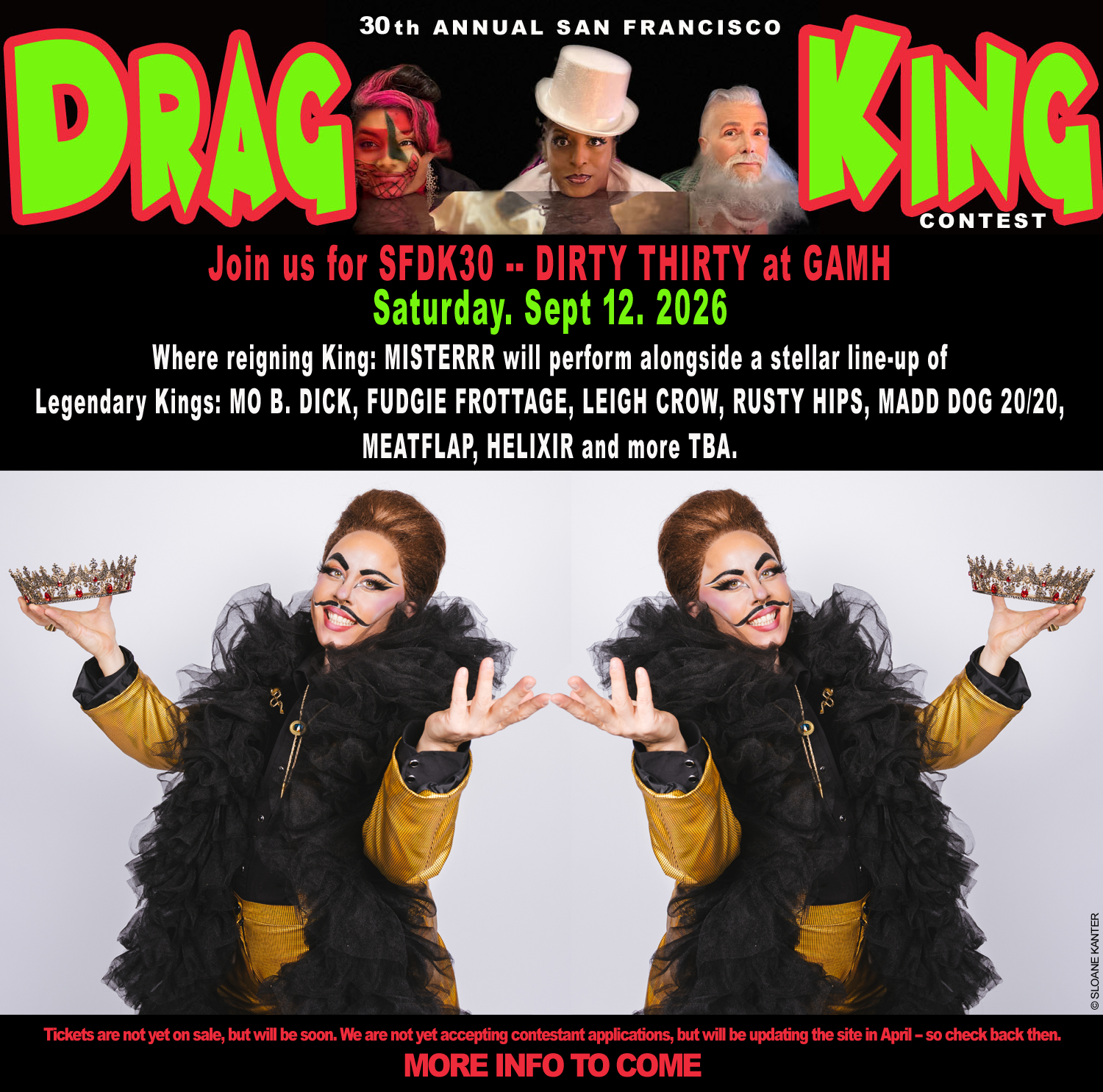 Bold, brazen, beautiful and binary-bashing Drag Kings take center stage to compete and celebrate at the biggest, best and longest-running Drag King Contest in the world. Come bust a nut while we deconstruct the patriarchy that be - This year's theme: No Kings but Drag Kings. This fierce and fun-fueled competition is filled with head-to-head, two-fisted tomfoolery complete with dazzling makeup and costumes, larger than life pulsating pelvises, crowns, gowns, clowns and hounds.